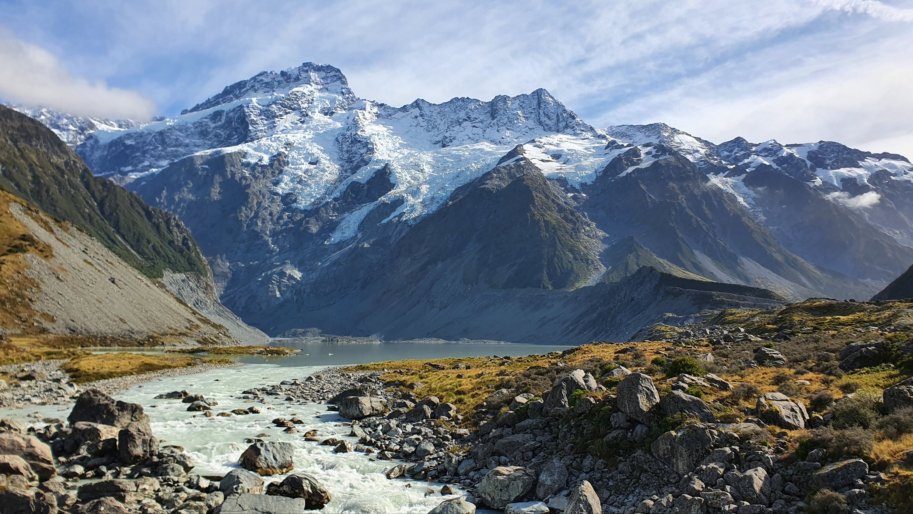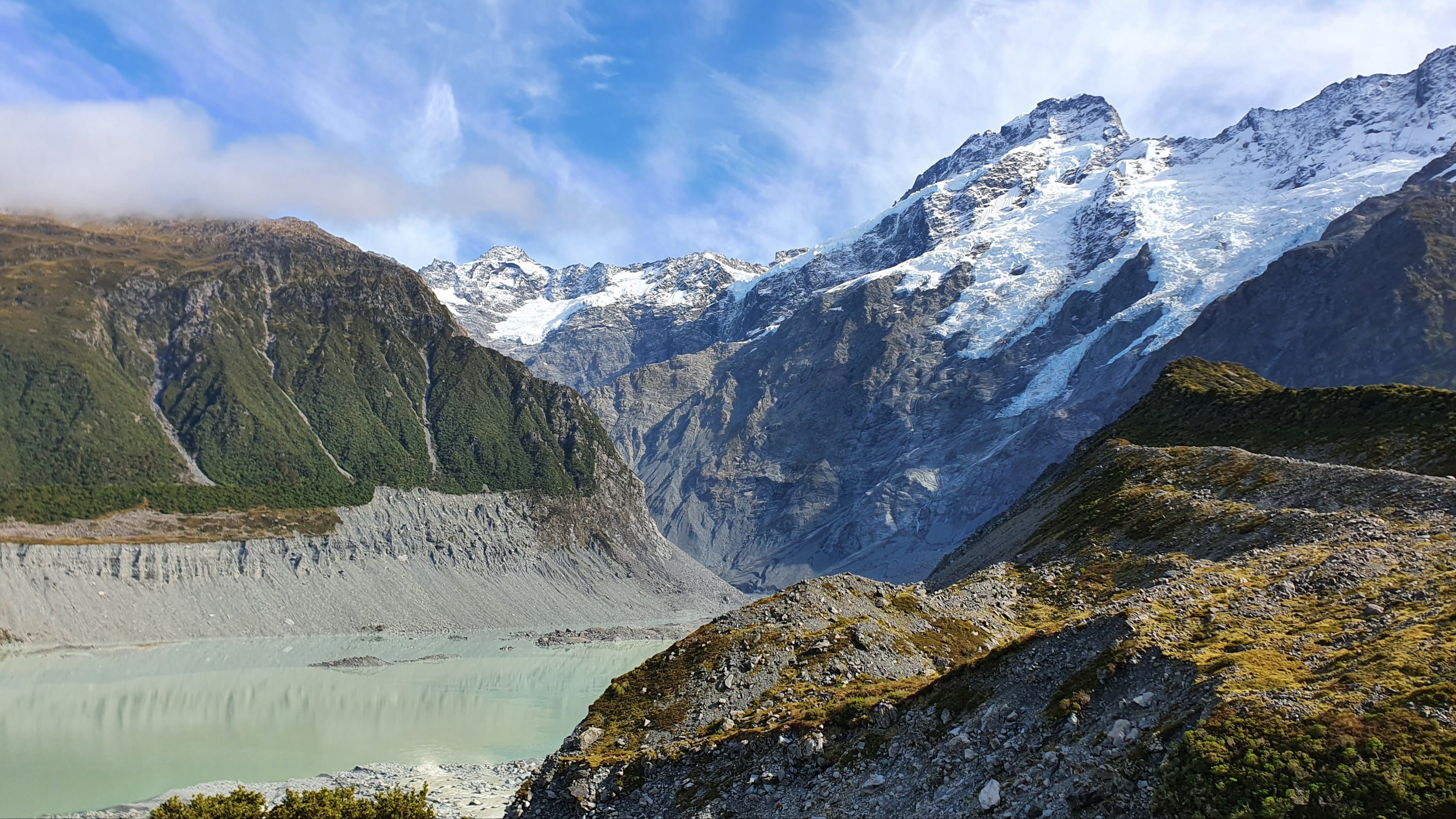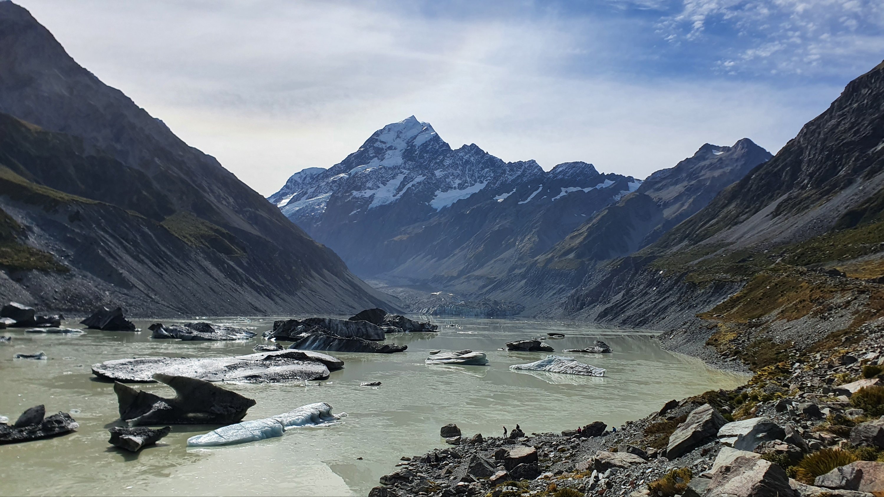 Mrs N and I are on a bit of a road trip thing you see, and visiting some of the rather nice places that our country has to offer. One of those places was the Aoraki / Mt Cook National Park. Now yes, you can drive to the end of the road and get a pretty decent view of Aoraki, you can even jump in a helicopter and see it from the air. However one of the most rewarding things to do is the Hooker Valley hike to the Hooker Lake, which is full of icebergs that calve off the Hooker Glacier. See what they are doing there with the naming thing?