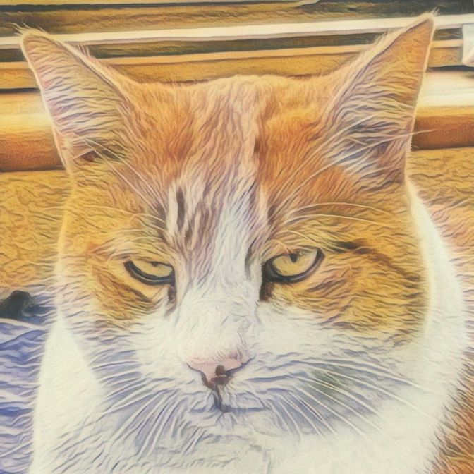 A large, one could even say chonky, orange and white cat announced his presence at the door.