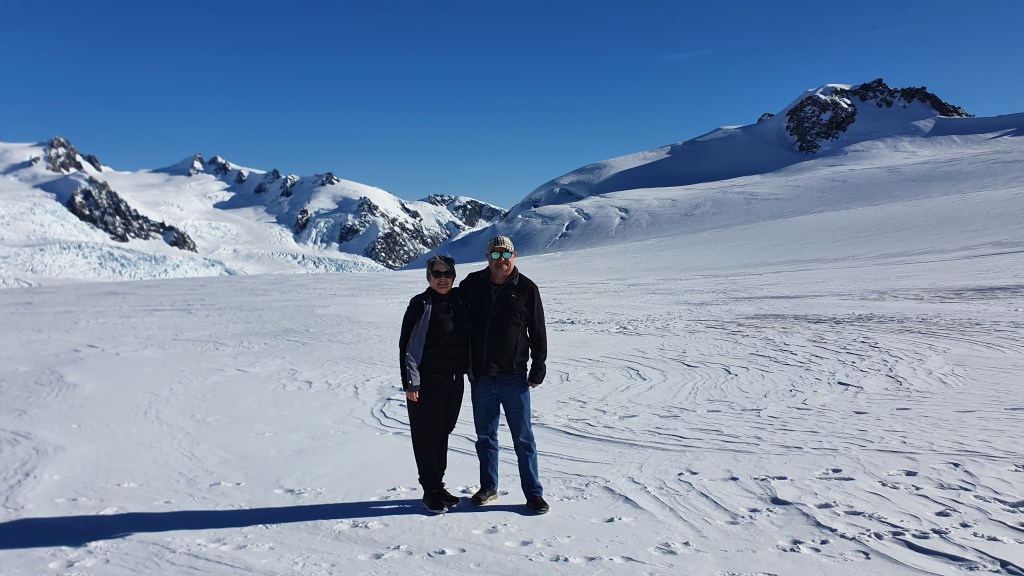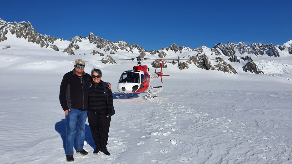 We had planned to do the heli-glacier hike on Franz Josef Glacier; Kā Roimata-o-Hine Hukatere (the frozen tears of Hine Hukatere). The web site made it clear, that trips are weather dependant and that you should allow at least a couple of days in the area, just in case the weather cancels the trip. Fortunately, the weather smiled upon us.