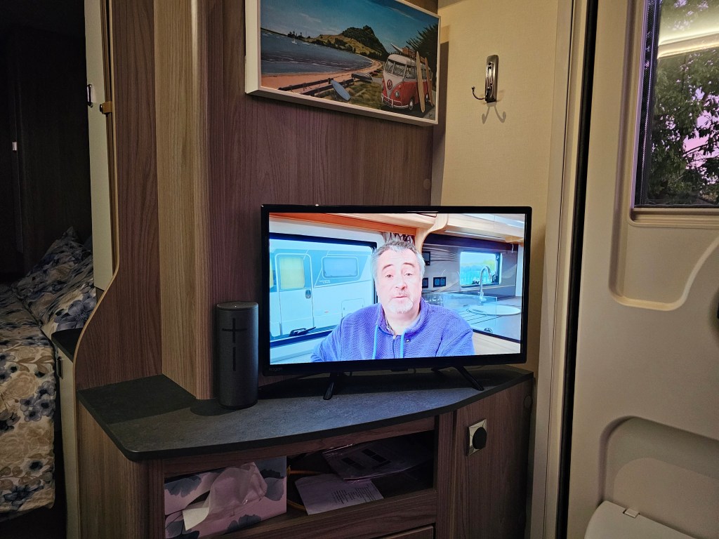 I have been thinking for some time about buying a 12V TV for our caravan. As you do. Our new caravan (Swift 580 Finesse) came with an aerial and powered signal booster, with ports in the living room and bed room. Swift also provide an AC outlet and 12V outlet at each location. So far so good.